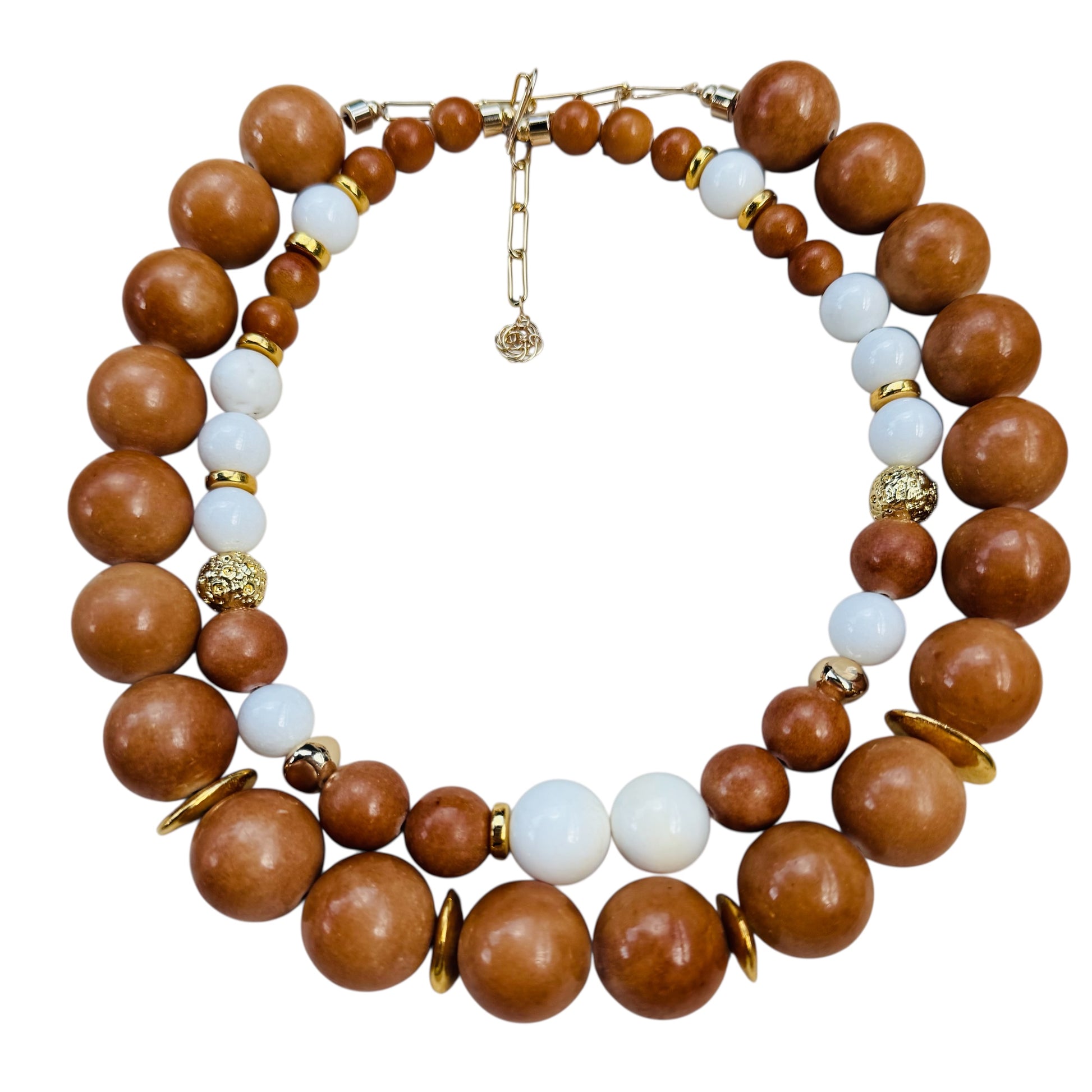 Whether layered with the Carmel necklace or worn alone as a statement of elegance, this necklace is an ideal neutral accessory that effortlessly sophisticates any outfit.