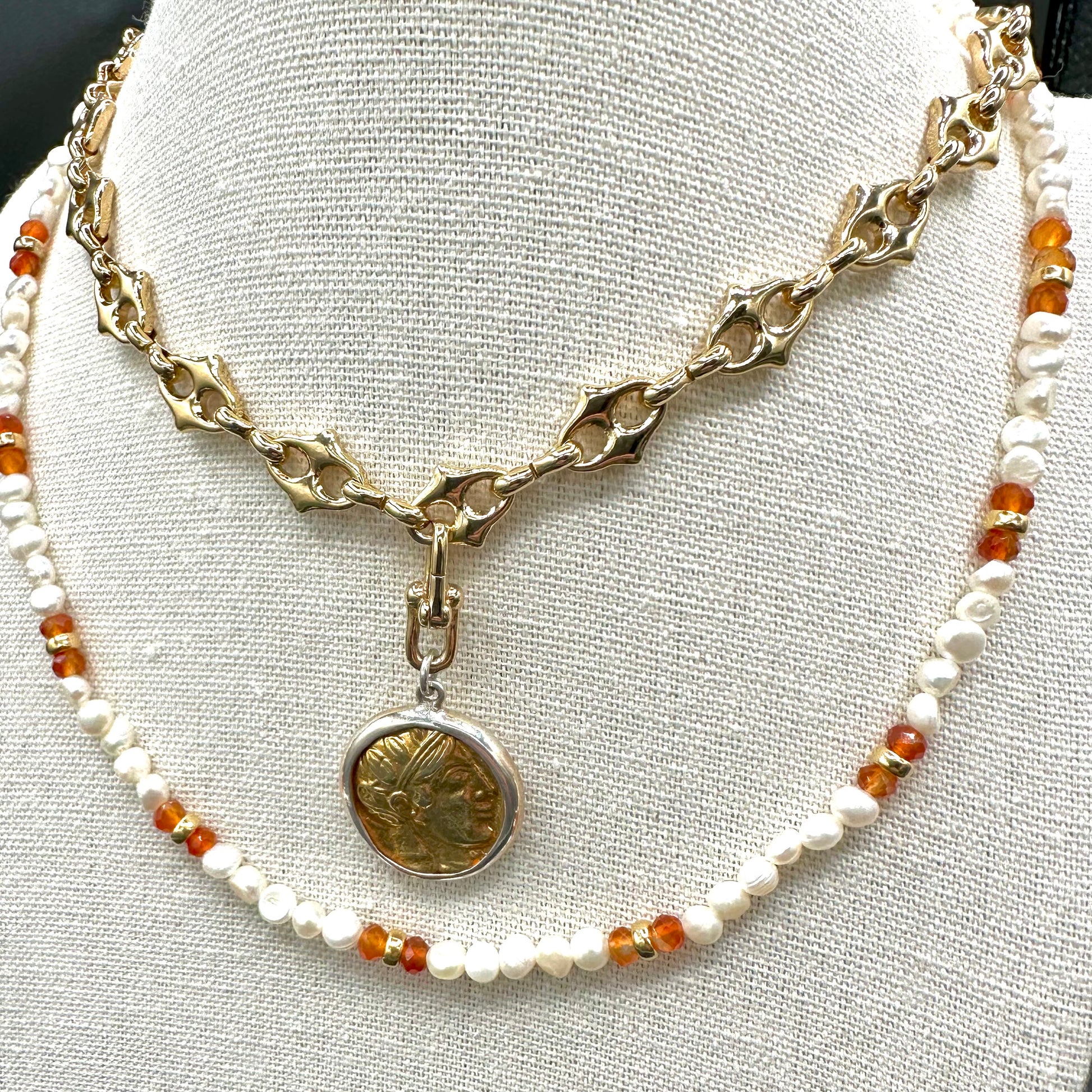 Seen here paired with cameo pendant on Finley chain.